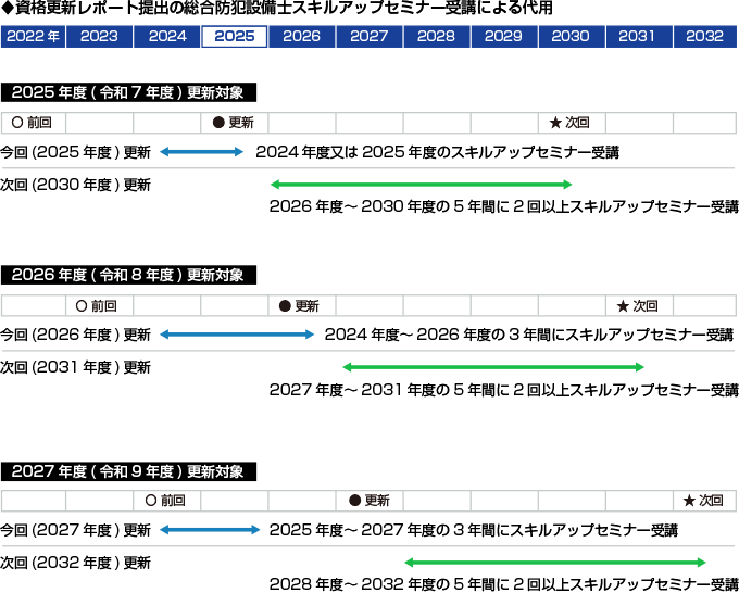 - ・「資格更新用レポートの提出」は「5 年以内にスキルアップセミナーを2回以上受講」に代用可